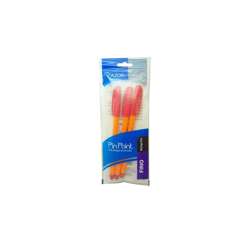 DescripciónARTÍCULO:BOLIGRAFOCOLOR:ROJOMODELO:PIN POINTMARCA:AZORTAMAÑO:PUNTO FINOCaracterísticasColor de la tinta:ROJOColor del barril:AMARILLOTipo de punto:FINORetráctil:NOTipo de tinta:PERMANENTEModelo:PIN POINTGrip:NOBorrable:NOTinta anti fraude:NOForma del cuerpo:CILINDRICOArtículos RelacionadosBoligrafos:N/AMarcadores:N/ARollers:N/APresentaciónPieza:N/ABlister:BOLSA C/3 PIEZASCaja:N/ACorrugado:16.0