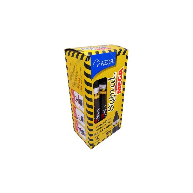 DescripciónARTÍCULO:MARCADORESTIPO:BASE SOLVENTECOLOR:NEGROMODELO:SIGNALMARCA:AZORCaracterísticasTamaño:N/ABarril:BARRIL DE ALUMINIOPunta:PUNTA CINCEL 6 MMTapa:DEL COLOR DE LA TINTAContenido:CAJA CON 6 PIEZASMateriales:TINTA PERMANENTE BASE SOLVENTE, BARRIL ALUMINIOArtículos RelacionadosClave:301.1500NEPresentaciónColor de la tinta:COLOR NEGROTipo de punta:PUNTA CINCEL 6 MMTipo de tinta:TINTA PERMANENTE BASE SOLVENTEToxico:NO TOXICORetráctil:NODepósito de tinta visible:NOClip:N/APizarron:NOGrip:NO