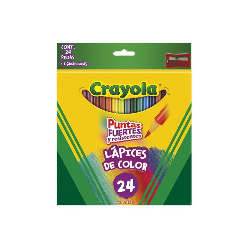 DescripciónARTÍCULO:LAPICESCOLOR:DE COLORESMATERIAL:DE MADERAMODELO:CM-24LMARCA:CRAYOLACaracterísticasMaterial del cuerpo:MADERAMaterial de la mina:PIGMENTOS NATURALESGoma:NO APLICACantidad de colores:24COLORES Y UN SACAPUNTASArticulos RelacionadosGoma:NO APLICASacapuntas:SILapiz rojo:NO APLICALapiz bicolor:NO APLICAPresentacionPieza:NABlister:NACaja:24 COLORESCorrugado:36 CAJAS