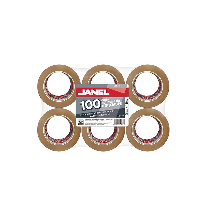 DescripciónARTÍCULO:CINTA ADHESIVATIPO:DE EMPAQUECOLOR:CANELAMODELO:156MARCA:JANELCaracterísticasClave:JAN-ADS-EM48X15Medidas:48*150Material:POLIPROPILENO Y ADHESIVO HOT MELTUso:EMPAQUE DE CAJASColor:CANELAModelo:100Despachador:JAN-DES-H5Presentación:BLISTER DE 6 ROLLOSArtículos RelacionadosDespachador:JAN-DES-H5Cinta adhesiva:lineaS 100, 060 Y 080PresentaciónBlister:6Master:36Corrugado:N/AFacturacion:BLISTER DE 6 ROLLOS