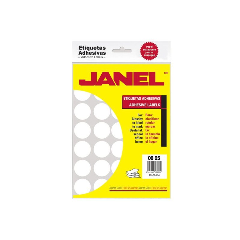 DescripciónARTÍCULO:ETIQUETASCOLOR:BLANCASMODELO:NO.12MARCA:JANELMEDIDA:25 MM DIAMETROCaracterísticasMedidas:12 X 25 MMModelo:N/ACompatibilidad de impresión:N/AColor:BLANCOUso:HOGAR Y OFICINAArtículos RelacionadosEtiqueta laser:N/AMarcador:N/APresentaciónPaquete:N/ACaja master:20